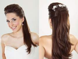 Se quiser deixar o penteado ainda mais delicado, uma boa dica é apostar nos enfeites de cabeça, com flores, e acessórios com brilhos e strass que ajudam a enriquecer e sofisticar o penteado.