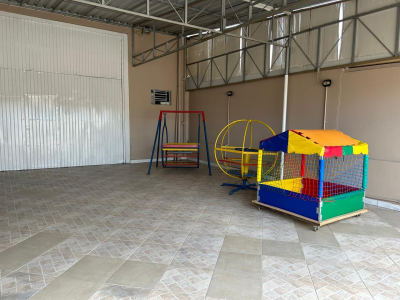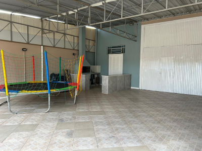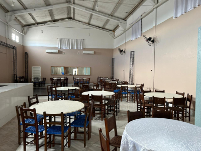 Salão de festas com capacidade para até 100 pessoas. Dispõe de brinquedos, projetor de imagens, mesa de som e cozinha completo.