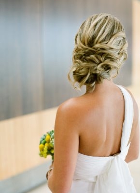 Costas decotadas: Já que noiva vai fazer o decote nas costas, o legal e mostrá-lo, E o coque lateral é um boa opção, já que deixa as costas livres e dá certo charme ao look da noiva.
